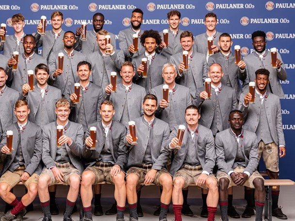 Os Jogadores do Bayern de Munique vestem o Tracht – a roupa típica da região de Baviera – nas vésperas do Oktoberfest, numa sessão de fotos promovida por uma empresa de cerveja alemã.