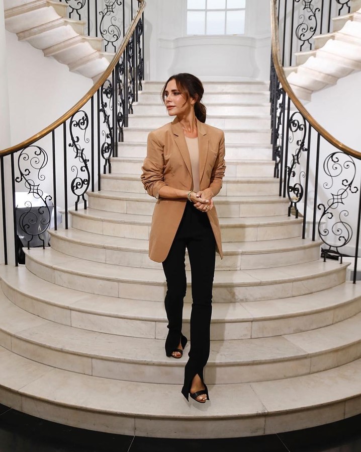 Essa tendência foi vista pela primeira vez no vestuário da ex-Spice Girl e designer, Victoria Beckham.