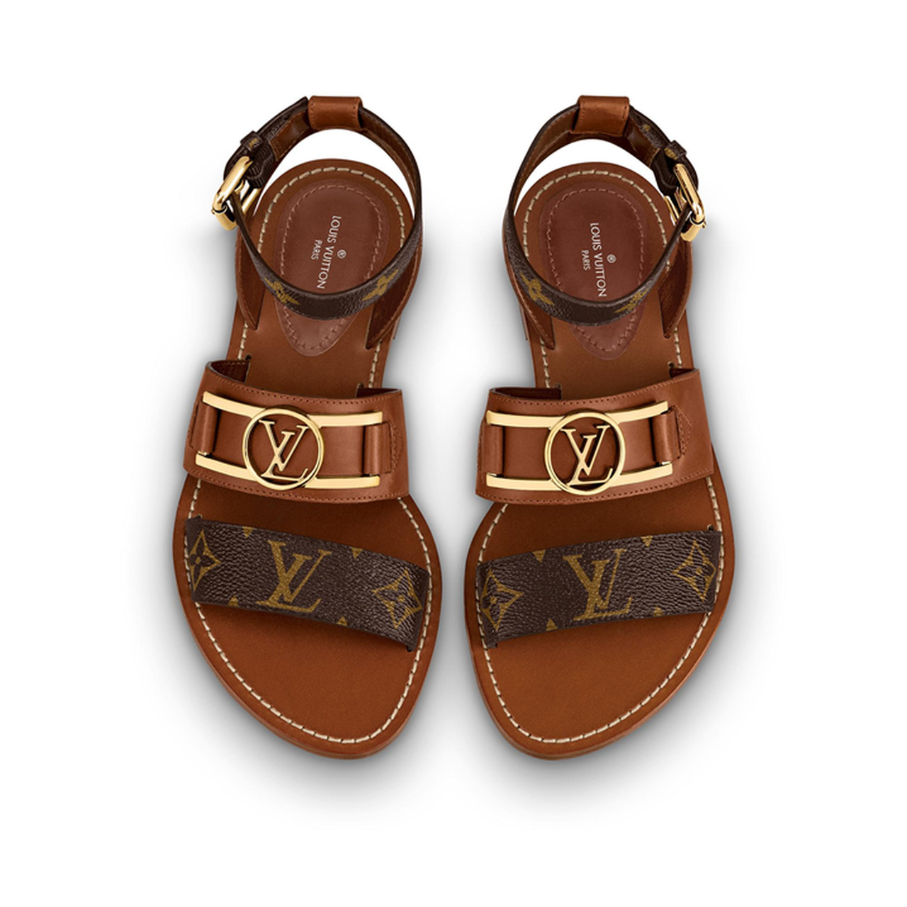 Este modelo de sandálias da Louis Vuitton é uma combinação perfeita para usar em diversas ocasiões: no trabalho, na universidade, ou em passeios.