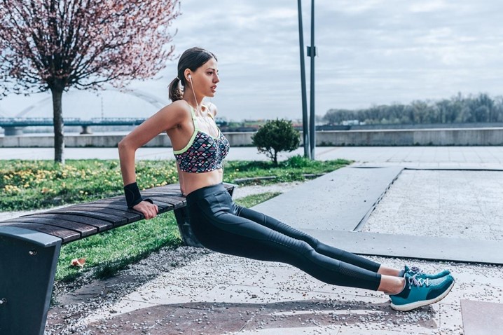 Este é o único exercício do plano que necessita de algum equipamento extra. Para isso, coloque perto uma cadeira ou uma mesinha estável e depois coloque as palmas das mãos na beira da cadeira ou da mesa. Estique as pernas e sente lentamente em direcção ao chão, até formar um ângulo de 90º com os cotovelos, e volte a subir, sem nunca tocar no chão, apenas com a força do tríceps. Repita o exercício por 30 segundos.